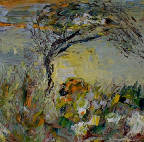 Click image to enlarge Cornish Trees 3 Available as a limited edition print SOLD Medium Oil on board Dimensions 8" x 8" Price £275 Theme South West 2